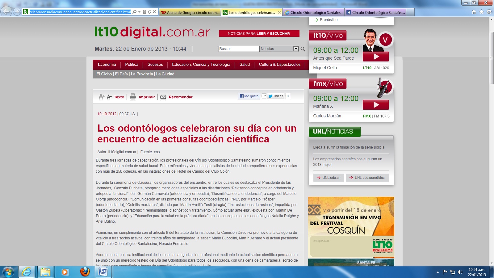 - Radio Continental Santa Fe FM 102.5: programa "Entre mate y mate", conducido por Lucho Catania, 2° y 4° sábados de cada mes, 10:30 hs.